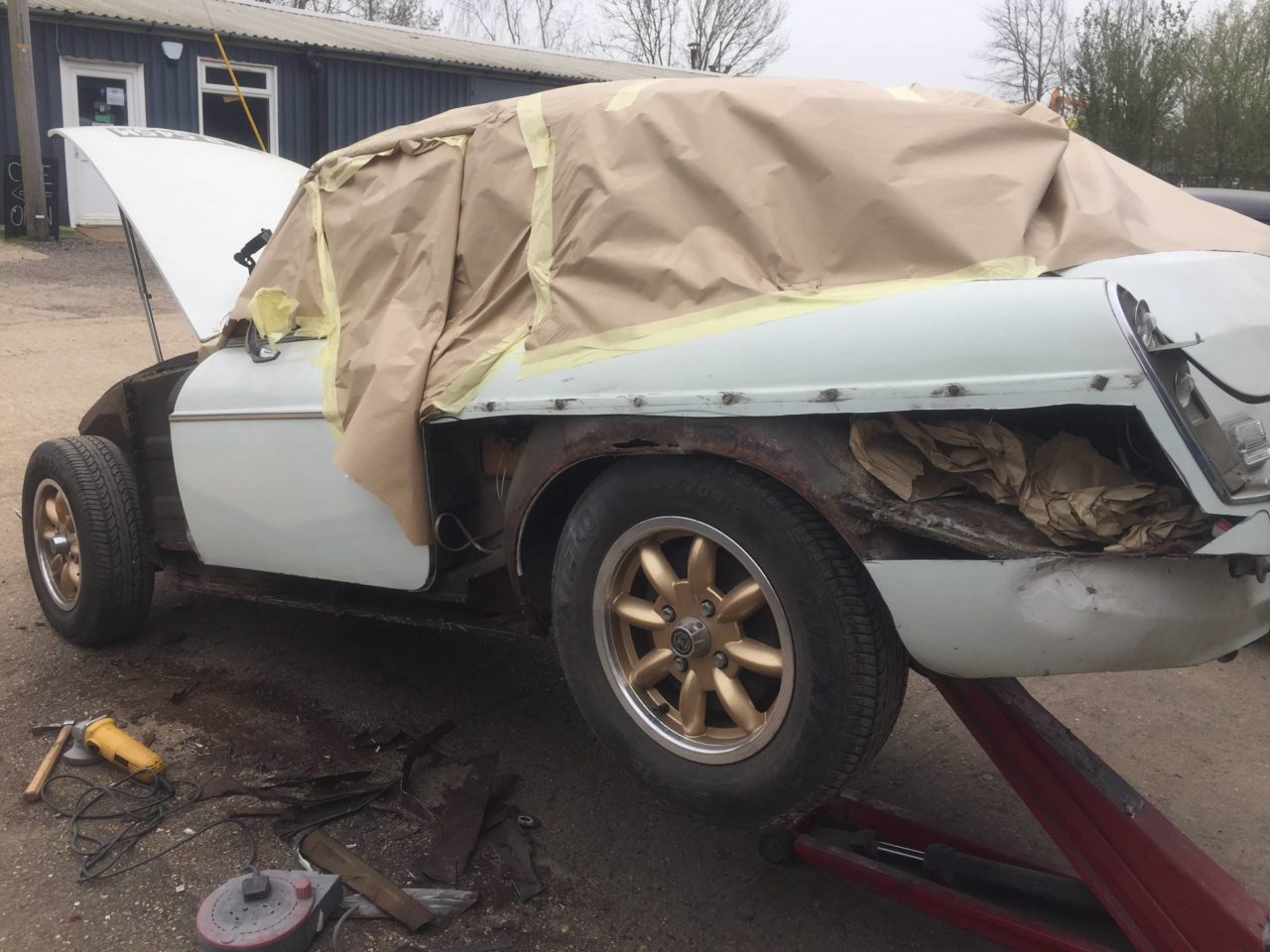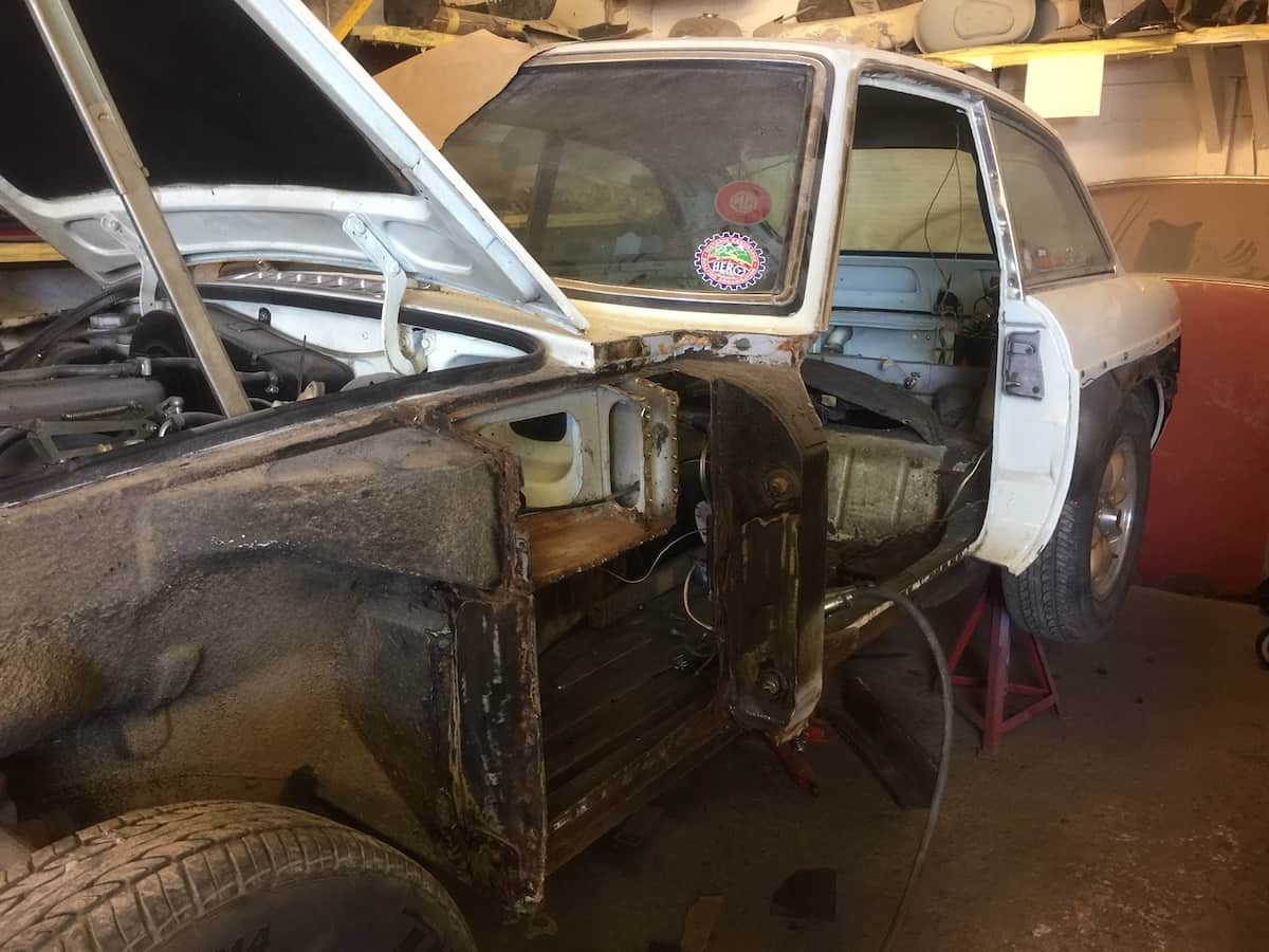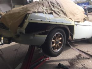 Some classic cars that come to us at White’s Bodyworks in West Sussex need just a little work doing to them, others require quite a lot repair and renovation. That was the case with this 1973 MGB which looked okay on the surface but needed substantial work carrying out on the bodywork once we got down to it.